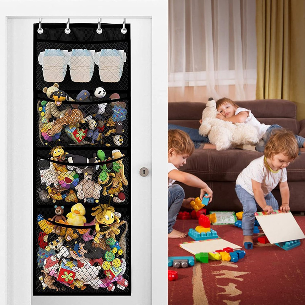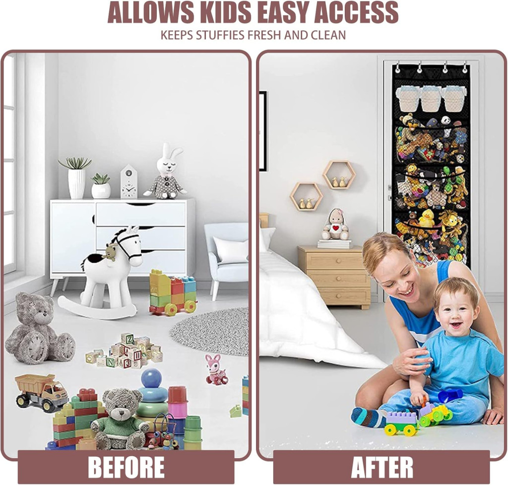 - Nagy kapacitás nagyobb plüssjátékok számára: a 168 x 59 cm-es rekesz nagyon nagy plüssjátékok tárolására alkalmas. Az akasztózsák négy zsákot tartalmaz, és a nagy formátum a felakasztás után azonnal lefedheti az egész falat, dekoratív hatást érve el.