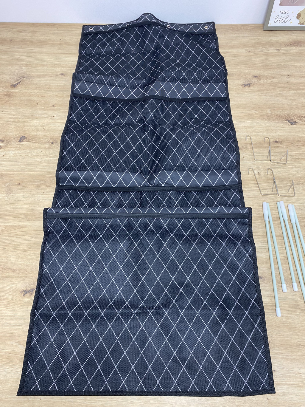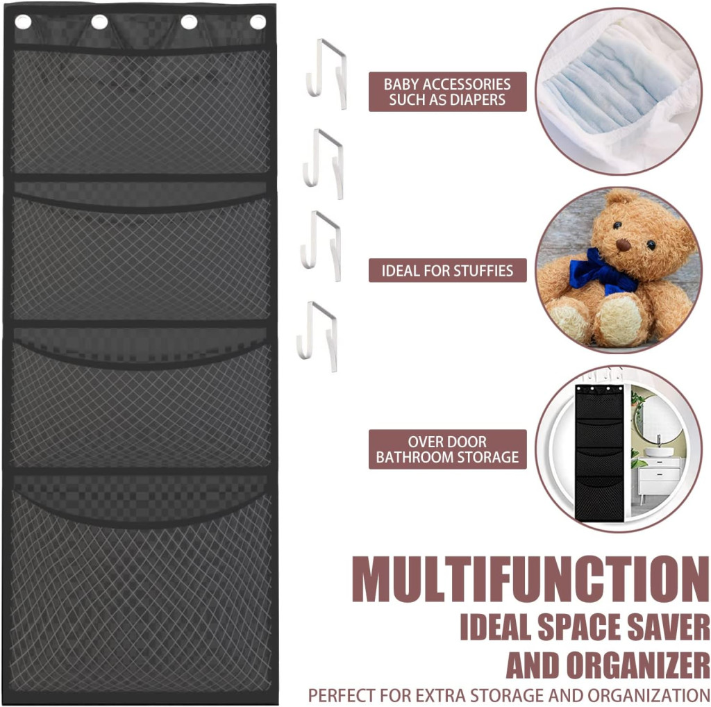 - Tartós és lélegző anyag a nagyobb sokoldalúságért: a tartós szövetből és lélegző hálóból készült szövet biztosítja, hogy a tárgyak és maga a hálós táska is száraz maradjon, ha viszonylag nyitott és száraz helyen helyezik el őket közvetlenül a táskába helyezve. Az üvegszálból készült hátsó tartószalag hatékonyan megakadályozza az ajtó deformálódását nehéz tárgyak felakasztása esetén.