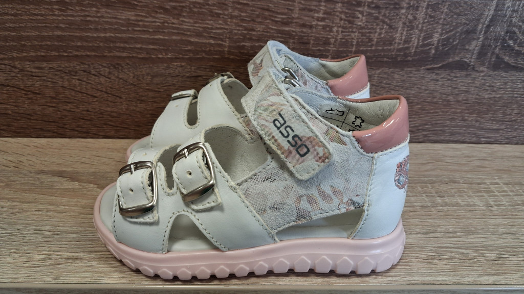 Asso lányka bőr szandál fehér-virágos 24-es méret