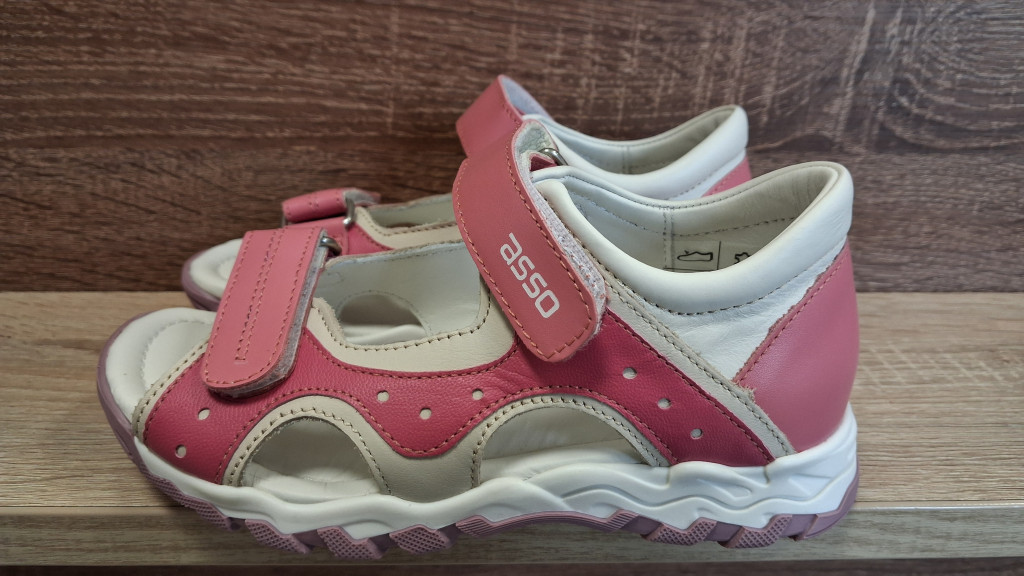 Asso lányka bőr szandál tépőzáras rózsaszín 30-as méret