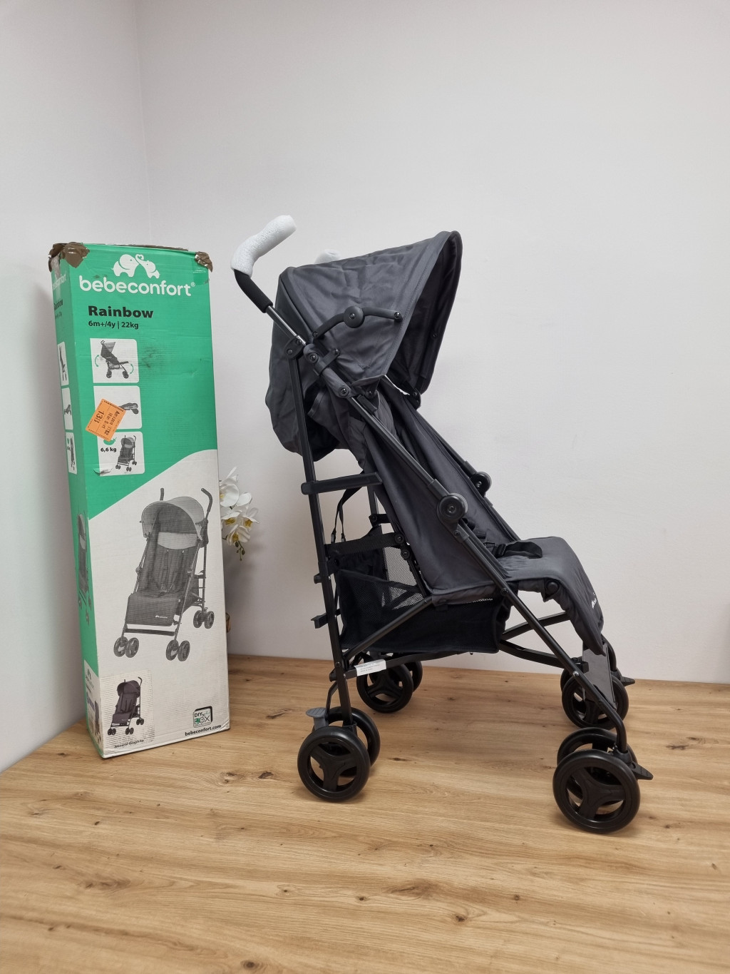 A multifunkcionális Bebeconfort Rainbow babakocsi ideális 6 hónapos és 3,5 éves kor közötti gyermekek számára. 15 kg-os súlyra tervezték. Gyermeked kényelmesen ül a párnázott ülésben még a leghosszabb utakon is, mivel a biztonságos és kényelmes ülés megtámasztja a babádat. Az állítható háttámla és lábtartó még kényelmesebbé teszi gyermeke számára, mivel a számára legmegfelelőbb pozícióban ülhet. Amikor már nincs szükséged a Bebeconfort babakocsira, könnyen (és gyorsan) összecsukhatod! A Bebeconfort Rainbow kompakt méretben tárolható az automatikus záródási mechanizmusának köszönhetően. Mindössze 6,6 kg-os súlyával a könnyű babakocsi ideális útközbeni használatra.