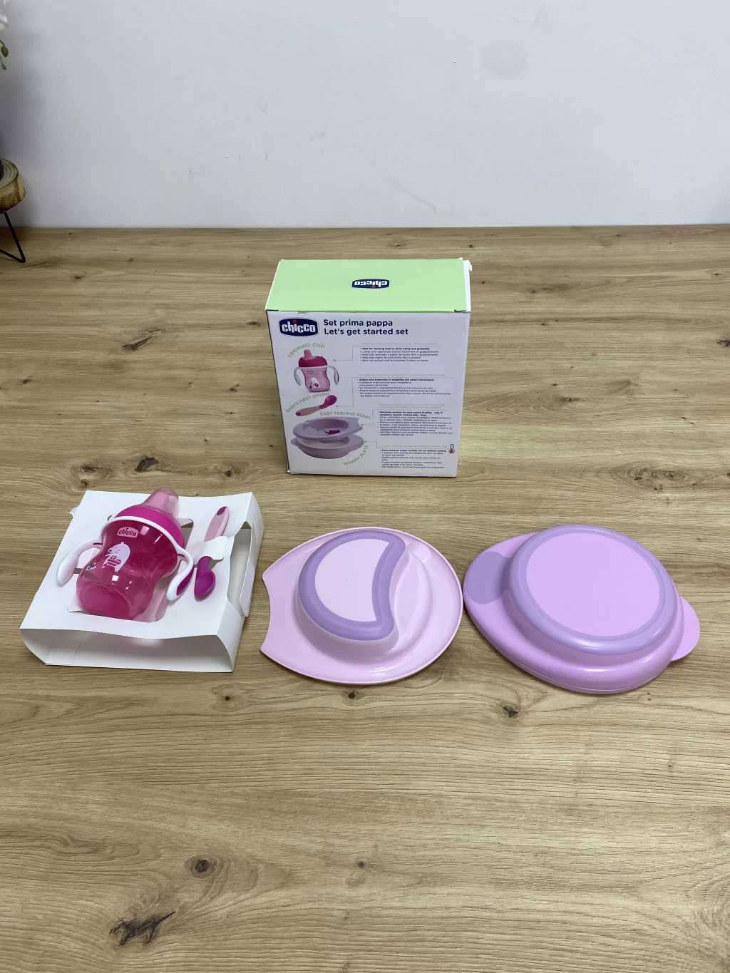 - A Chicco étkészlete mindent tartalmaz, amire szükséged van ahhoz, hogy megtanítsd babádat enni 6 hónapos kortól: 2 tányér (melegítőtányér és mélytányér), 1 ivópohár és 1 ívelt bébikanál.