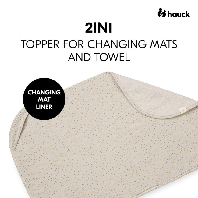 - 2 az 1-ben pelenkabetét és törölköző: akár pelenkázóalátétként a következő pelenkacseréhez, akár puha törölközőként fürdés után - a Hauck pelenkázóalátét-betét 2 az 1-ben kialakítása lehetővé teszi.