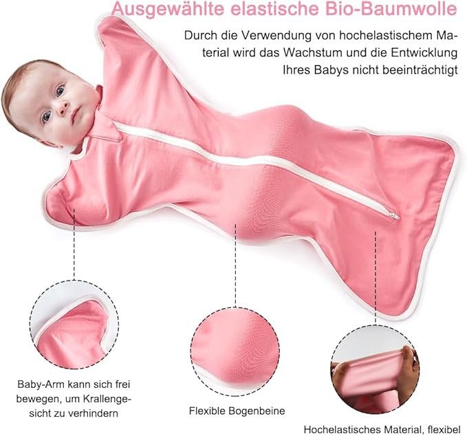 - Tudományos felkarolási kialakítás: a babapólya tudományos felkarolási kialakítást alkalmaz, hogy a baba karját alvás közben a kívánt felkarolási helyzetben tartsa, és elegendő mozgást biztosítson a baba megnyugtatásához és a Moro-reflex (ijesztés) enyhítéséhez, valamint az arc karcolásának megelőzéséhez.