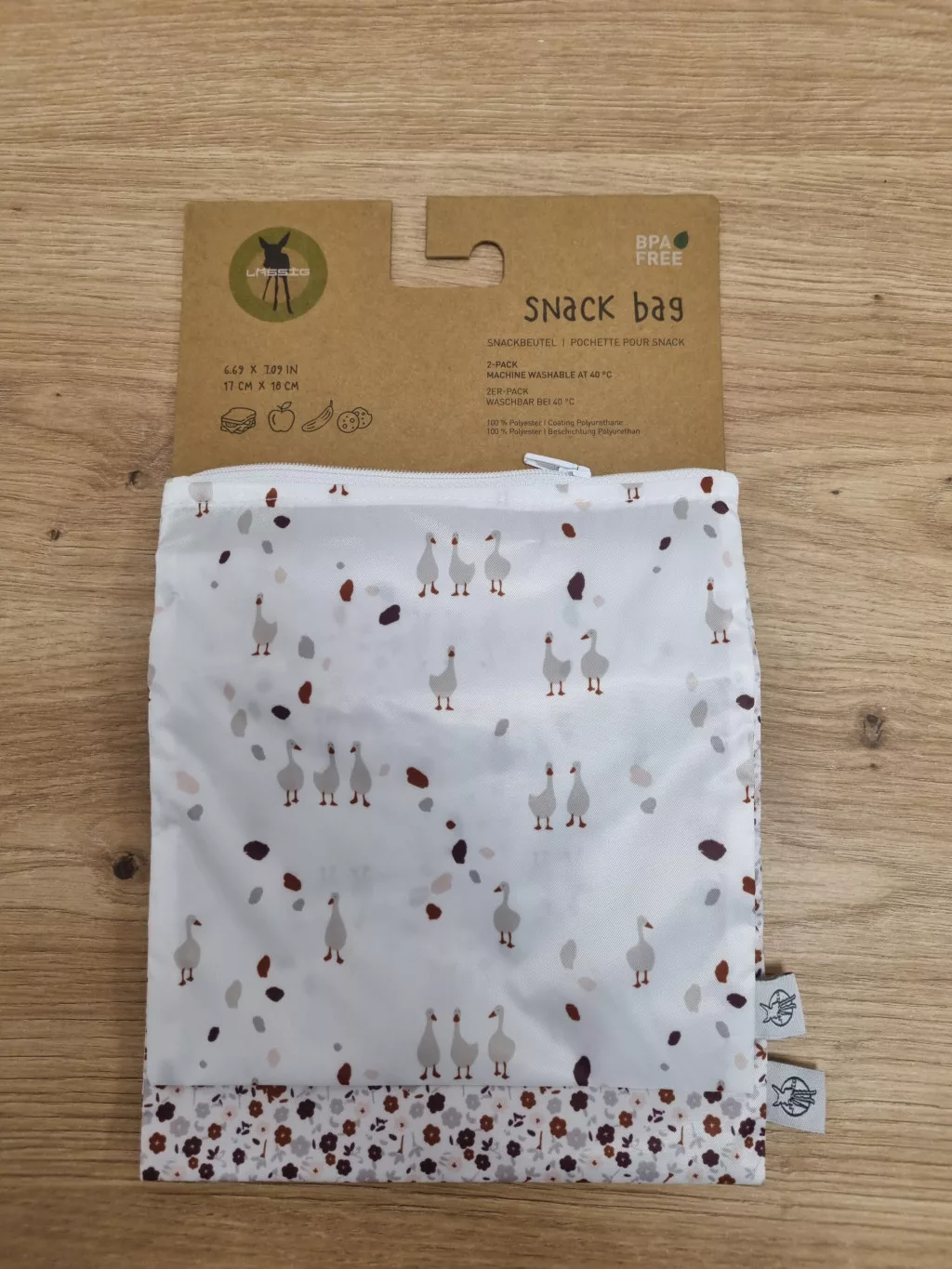 Édes állatos mintáival nemcsak igazi tekinteteket gyönyörködtető, de hihetetlenül praktikus is. A vízlepergető, BPA-mentes anyag megakadályozza a nedvesség bejutását. A fenntarthatóság sem feledkezett meg. A Snack Bag olyan gyakran használható, ahányszor csak szeretné, mivel 38°C-on mosható és cipzáras.