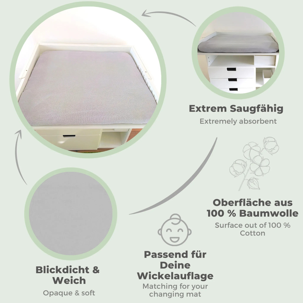 A szuperpuha és kényelmes frottírhuzat kényelmesen érzi magát a babáddal a pelenkacsere során, és mindkettőtök életét megkönnyíti.