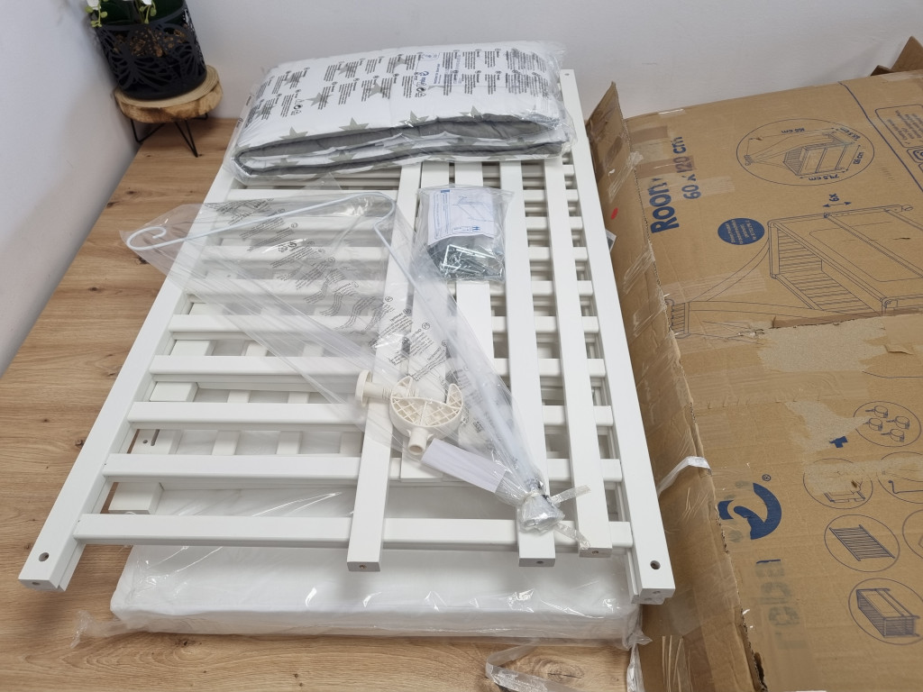 A Room Bed alvófelülete 60 x 120 cm, és 6 fokozatban optimálisan a szülők matracának magasságához igazítható.