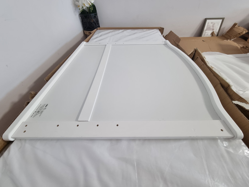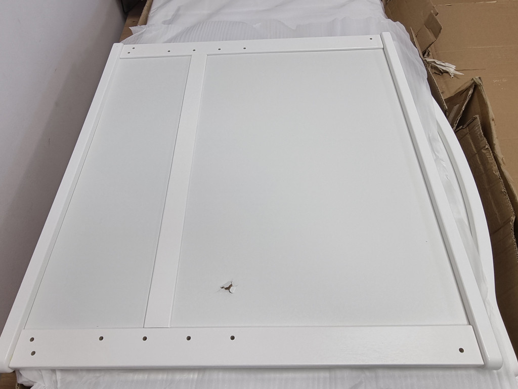 Szállítássérült új termék. Hiányzik a dobozból az ágynemű, a kispárna és a baldachin. Szállításkor a fejvégen egy kisebb lyuk keletkezett.