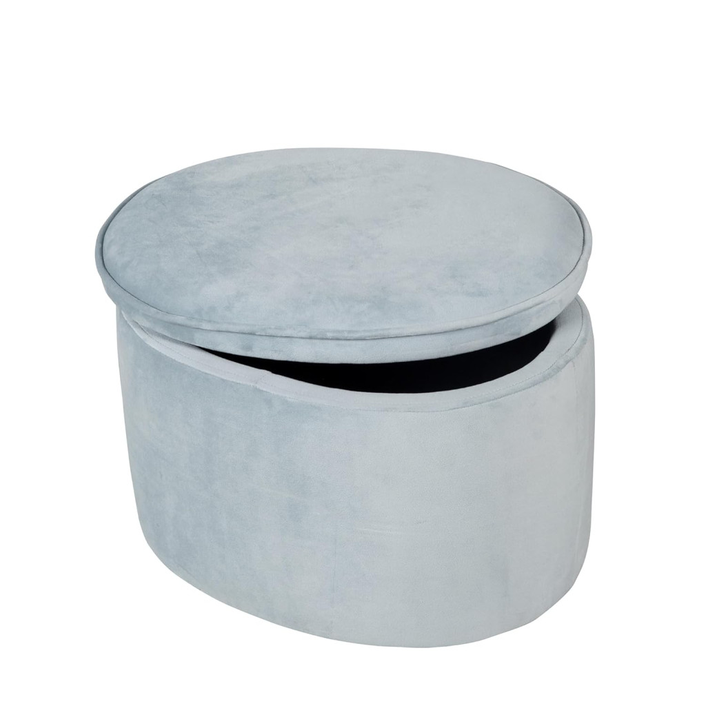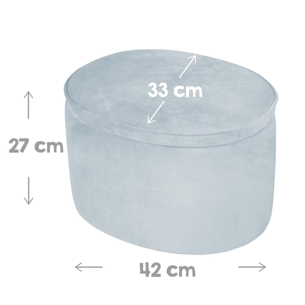 - A puha, párnázott, ovális gyerekzsámoly szürke, mályva vagy égszínkék/világoskék színben kapható, és barackszínű, puha bársonyhuzattal rendelkezik.