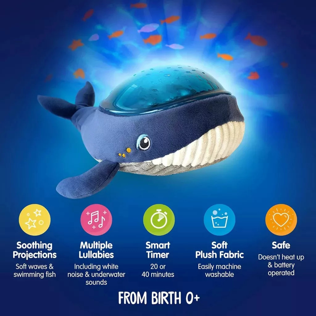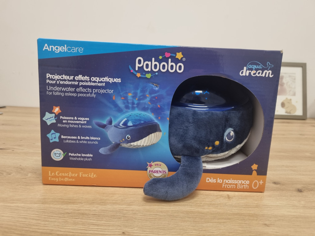 Pabobo Kid Sleep Musical és világító éjszakai fény - Bálna alakú plüss - Vízprojektor - Lámpa, Aqua Dream - Kék