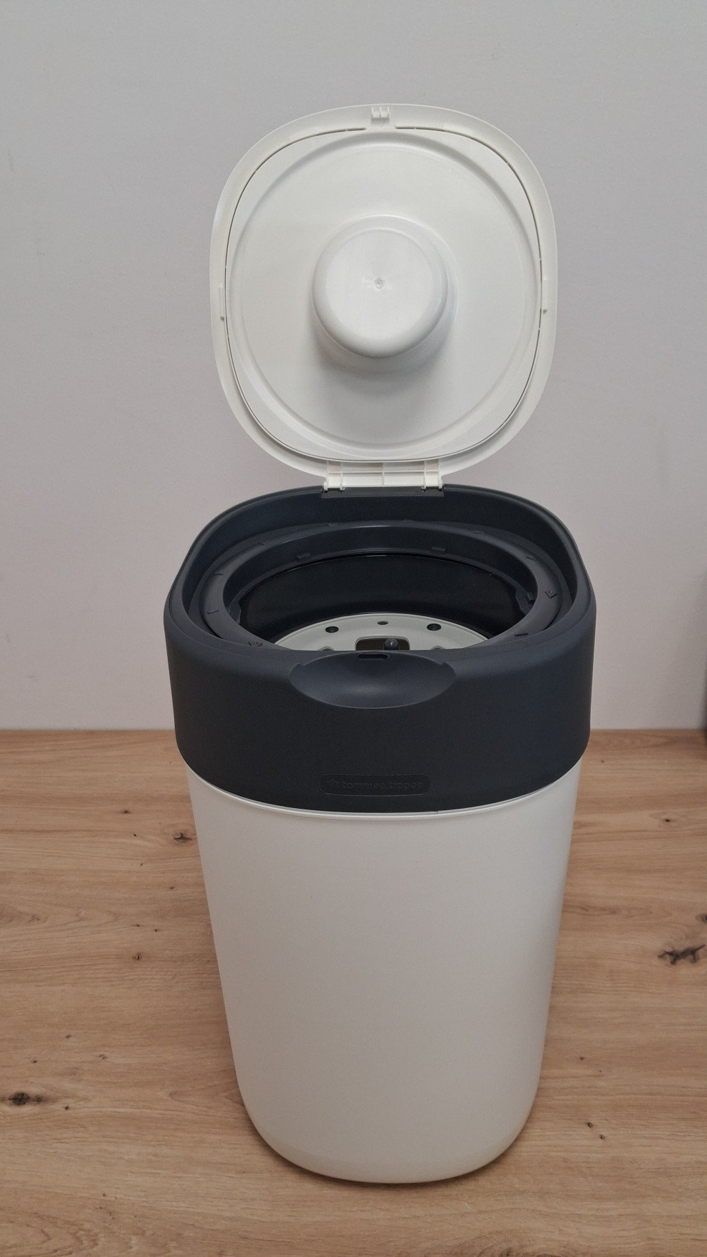 Tommee Tippee Twist and Click pelenkatartó kezdőkészlet, 12x utántöltő kazetta többrétegű, antibakteriális fólia, 100%-ban újrahasznosított alváz, fehér (a csomag változhat)